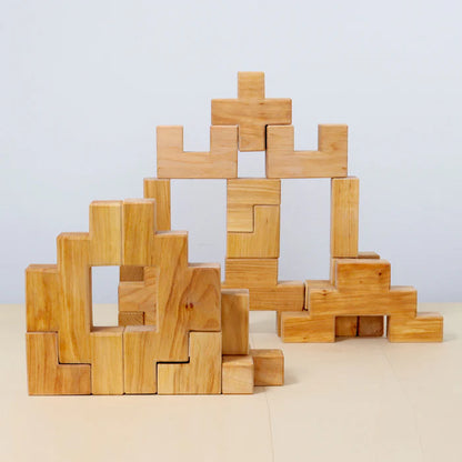 Deze houten bouwset nodigt uit tot open-einde-spel, waarbij geen vaste regels gelden en de verbeelding de enige beperking is. Ideaal om creativiteit, motoriek en ruimtelijk inzicht te ontwikkelen, zowel thuis als in een educatieve omgeving.