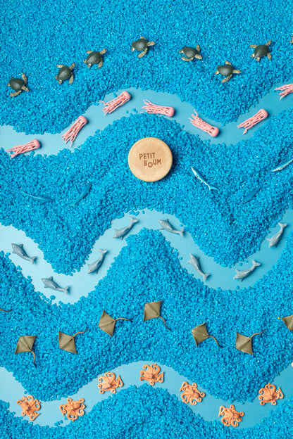De geur van zout water, het geluid van meeuwen en zacht zand tussen je vingers… Ben jij op zoek naar een verantwoord en leerzaam kraamcadeau? Dan is het sensorische speelgoed van het Spaanse merk Petit Boum echt iets voor jou! Met deze sensorische fles stimuleer je ontwikkeling van de zintuigen van baby’s. Dompel je baby onder met alles wat er in de zee te vinden is met de Petit Boum Sensorische Fles Zee! De Petit Boum Sensorische Fles Zee is met de hand gemaakt van onbreekbaar, BPA vrij kunststof. De dop van de fles zit muurvast, je kan hem dus niet opendraaien. De Petit Boum Sensorische Fles Zee is geschikt voor kinderen vanaf 3 maanden.