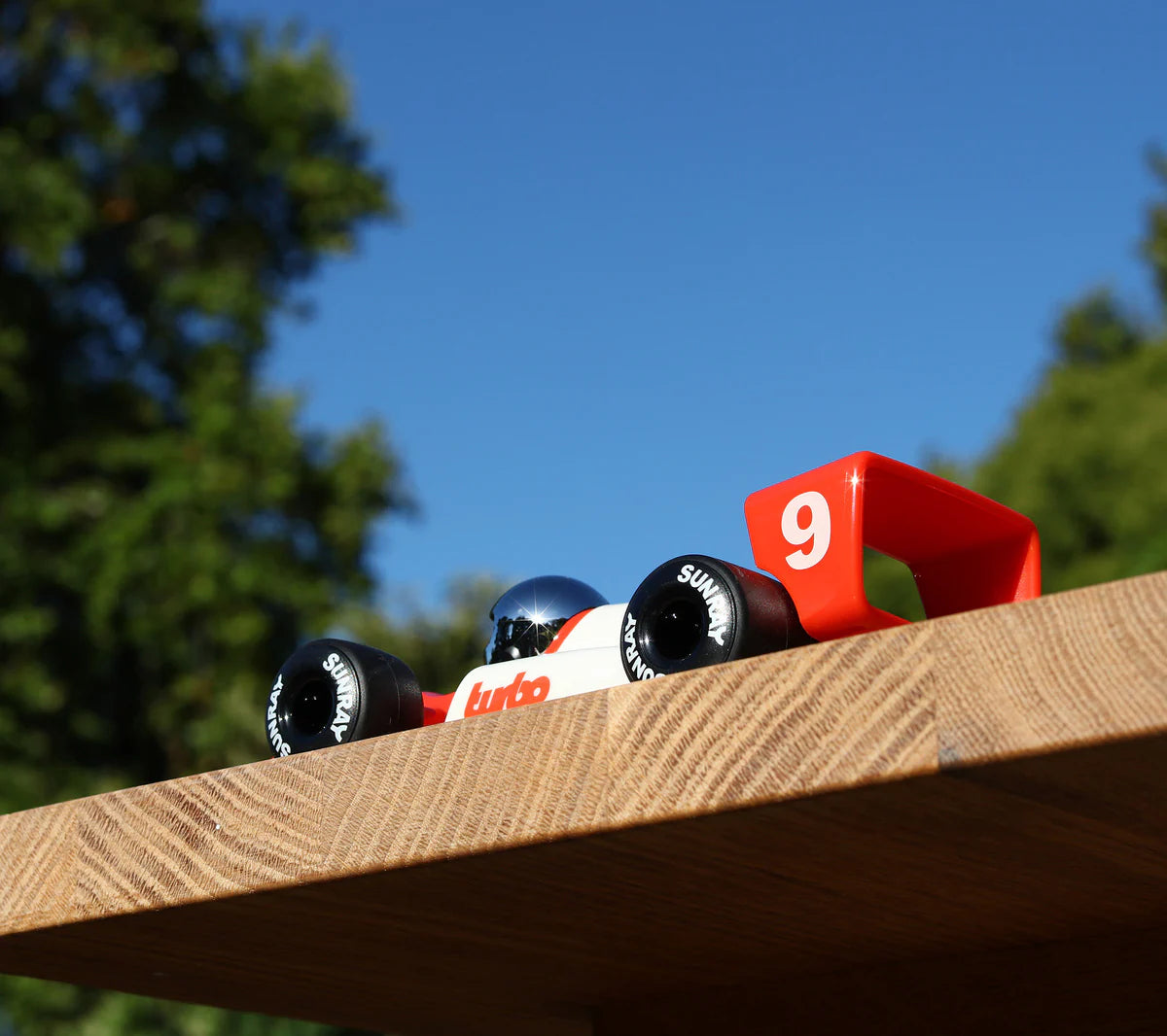 De Turbo-serie van Playforever is geïnspireerd op de revolutionaire F1-auto’s uit die periode. Ontwerper Julian Meagher wilde het gevoel van die rauwe, innovatieve tijd vangen in speelgoed dat zowel stoer als stijlvol is. De Lauper is ontworpen met strakke lijnen, een lage neus en brede banden – precies zoals de legendarische racemonsters van toen.