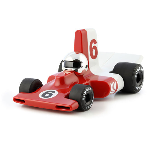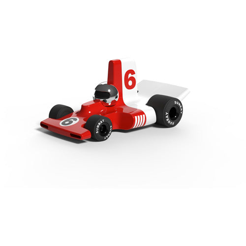 De Playforever Velocita Jean is een eerbetoon aan de gloriejaren van de Formule 1 in de jaren zeventig – een tijd waarin racen rauw, spannend en compromisloos was. Met zijn helderrode carrosserie, witte details en het nummer 6 straalt deze mini-racer pure retro-charme uit. Een strak design dat snelheid, stijl en nostalgie perfect combineert.