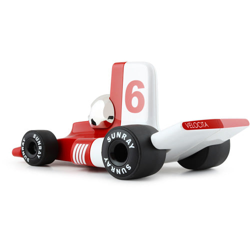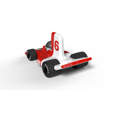 De Velocita-serie van Playforever is ontworpen door Julian Meagher en geïnspireerd op de legendarische F1-auto’s van de jaren ’70. Brede banden, een hoge achtervleugel en vloeiende vormen geven de Velocita Jean zijn kenmerkende uitstraling. Hij is niet alleen leuk om mee te spelen, maar ook een echte eyecatcher op een plank of bureau.