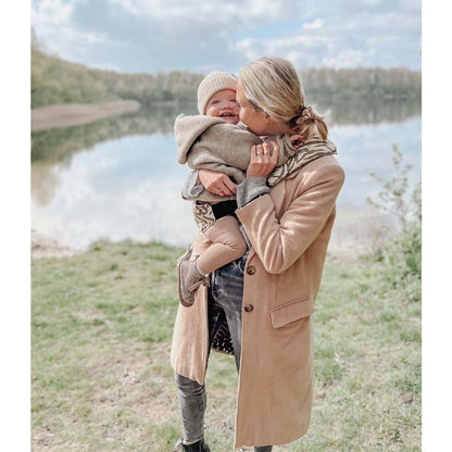 De hoge kwaliteit katoenen stof voelt zacht aan, is ademend en duurzaam. Dankzij het lichte gewicht en de stevige constructie blijft de draagzak comfortabel voor zowel ouder als kind, ongeacht het seizoen.